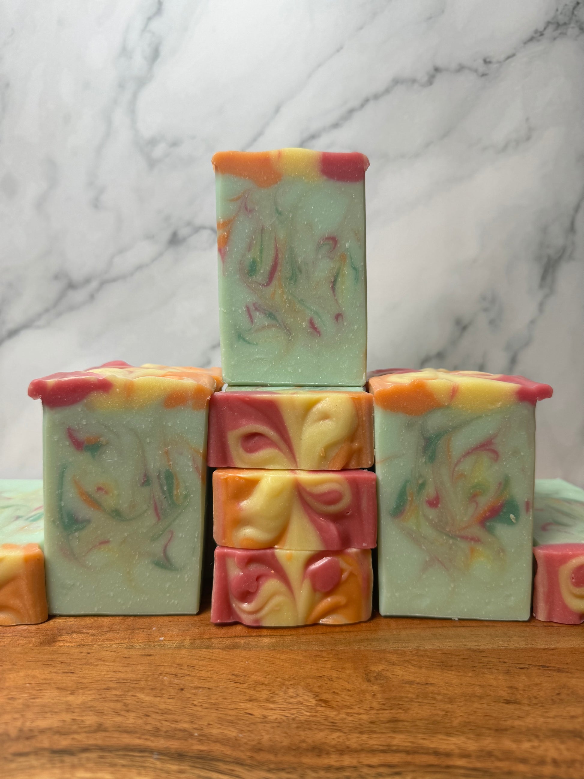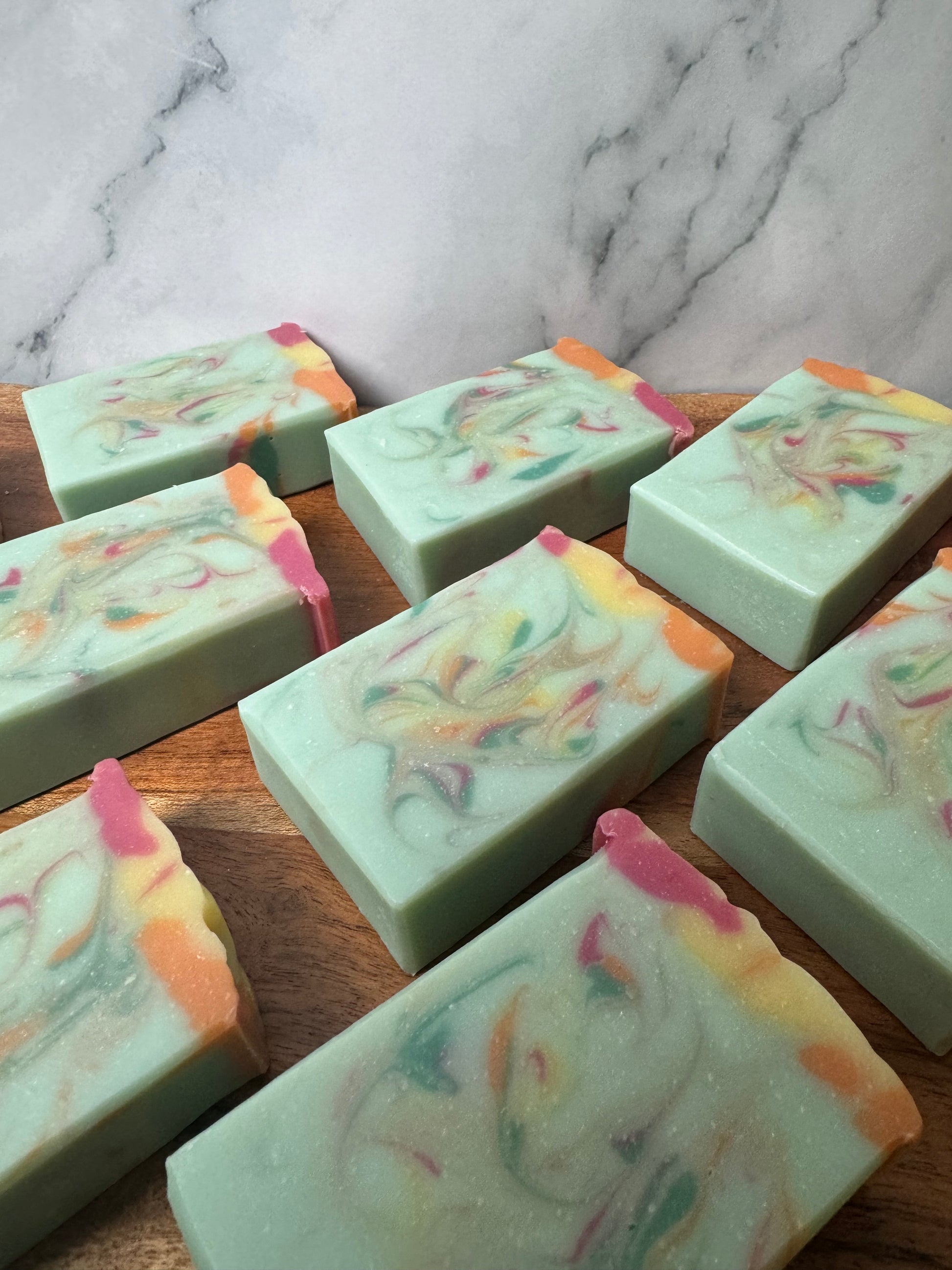 The soaps are handmade and hand cut so design and size may vary slightly. Bars are approximately 4 oz,