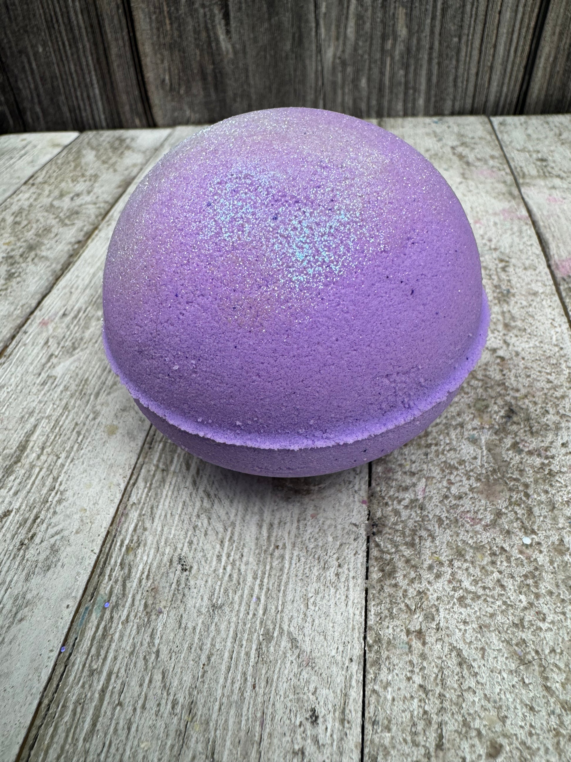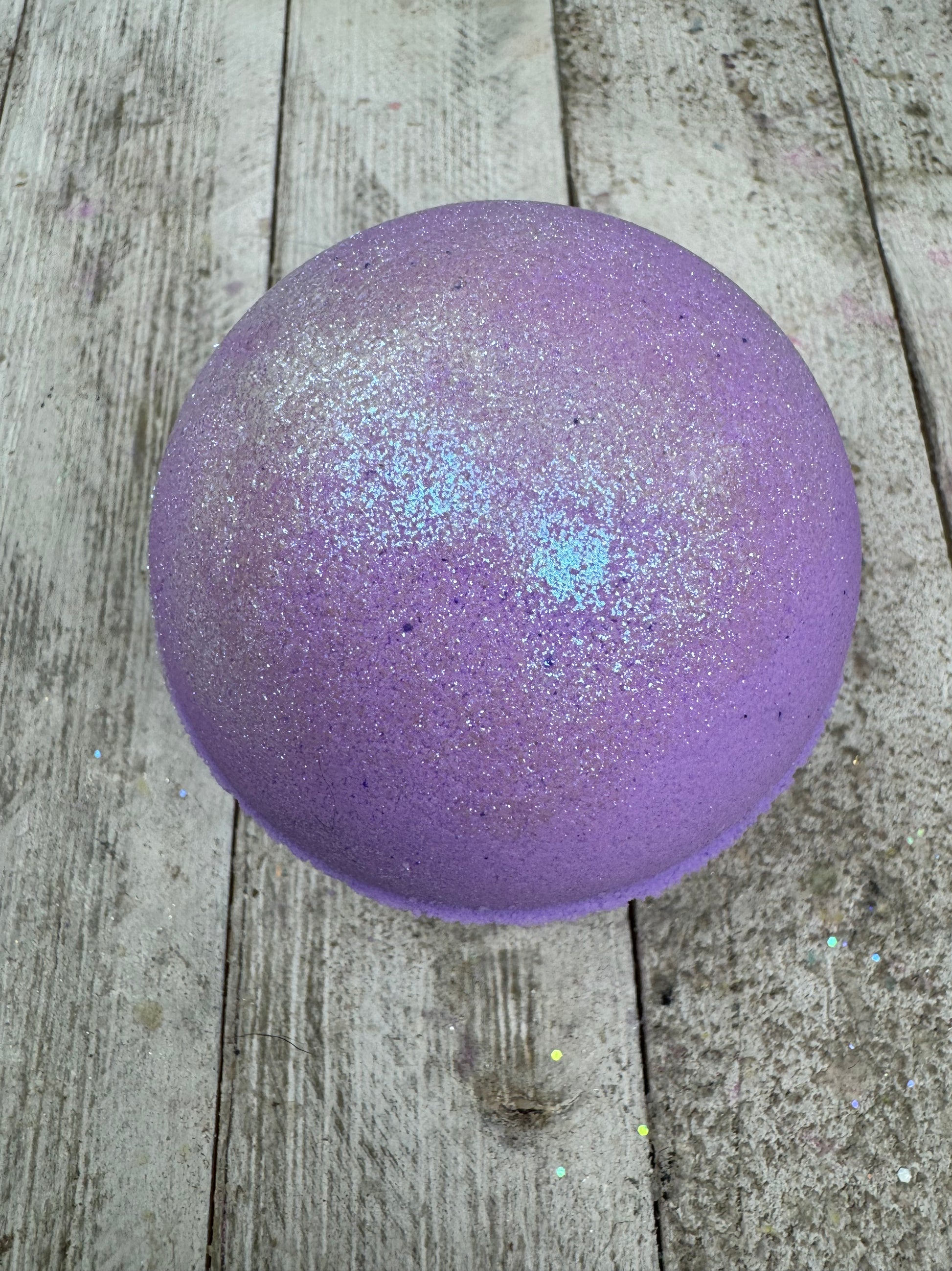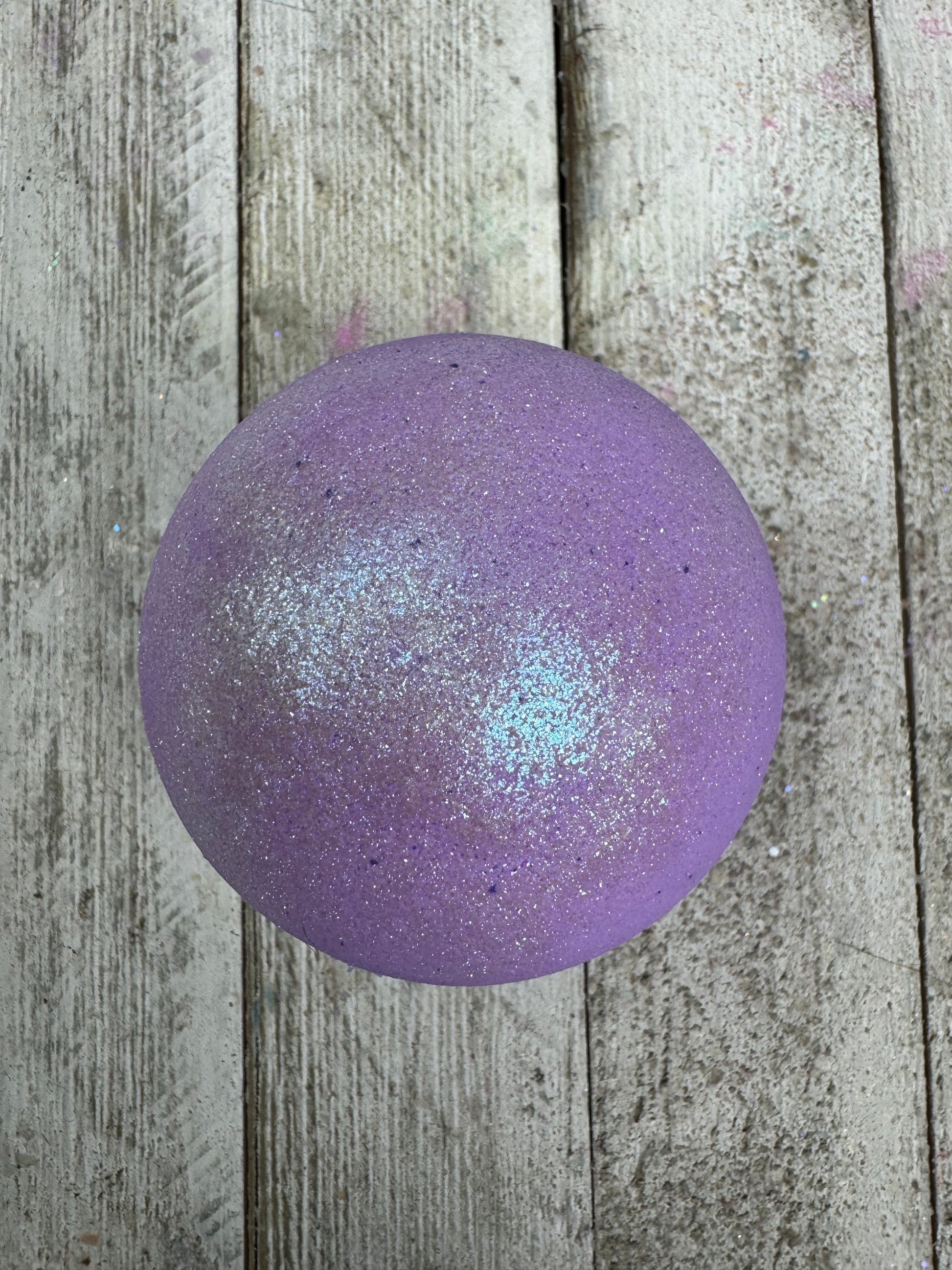 Indulge in the soothing embrace of our lilac bath bomb. A shimmering shade of purple with a touch of glitter, it transforms your bathwater into a calming lavender oasis. While it adds a delightful sparkle to your soak, rest assured it rinses away effortlessly, leaving your tub clean and your skin softly scented. Elevate your bath time to a luxurious experience with this enchanting lilac delight.