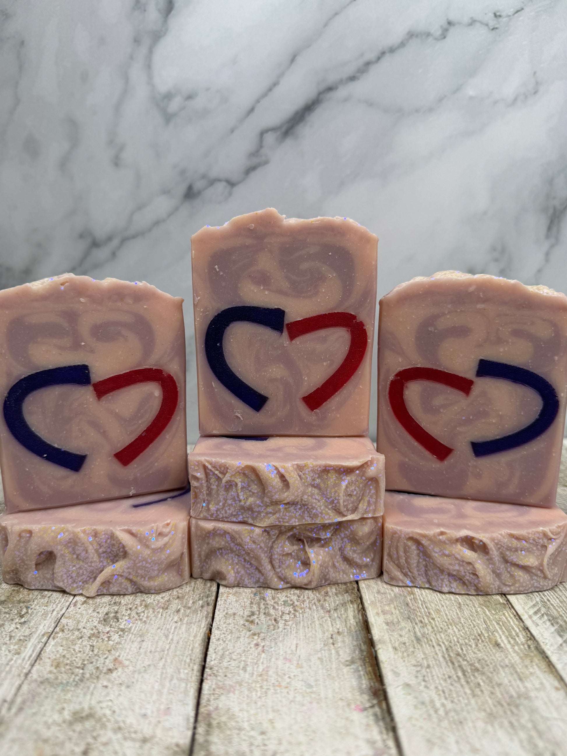 Indulge in the enchanting aroma of our 'Loving Spell' soap, inspired by the beloved Victoria's Secret fragrance. With vibrant hues of purple and pink, this soap features a charming heart center, exuding romance and allure with every use.