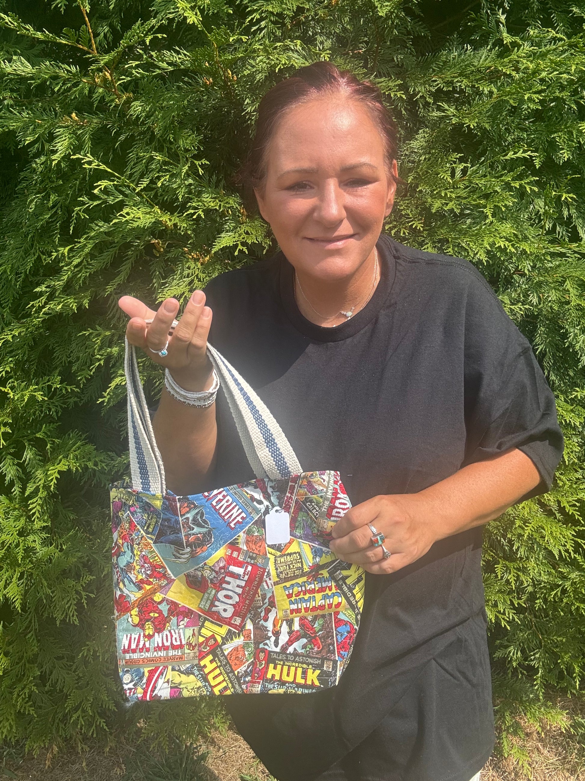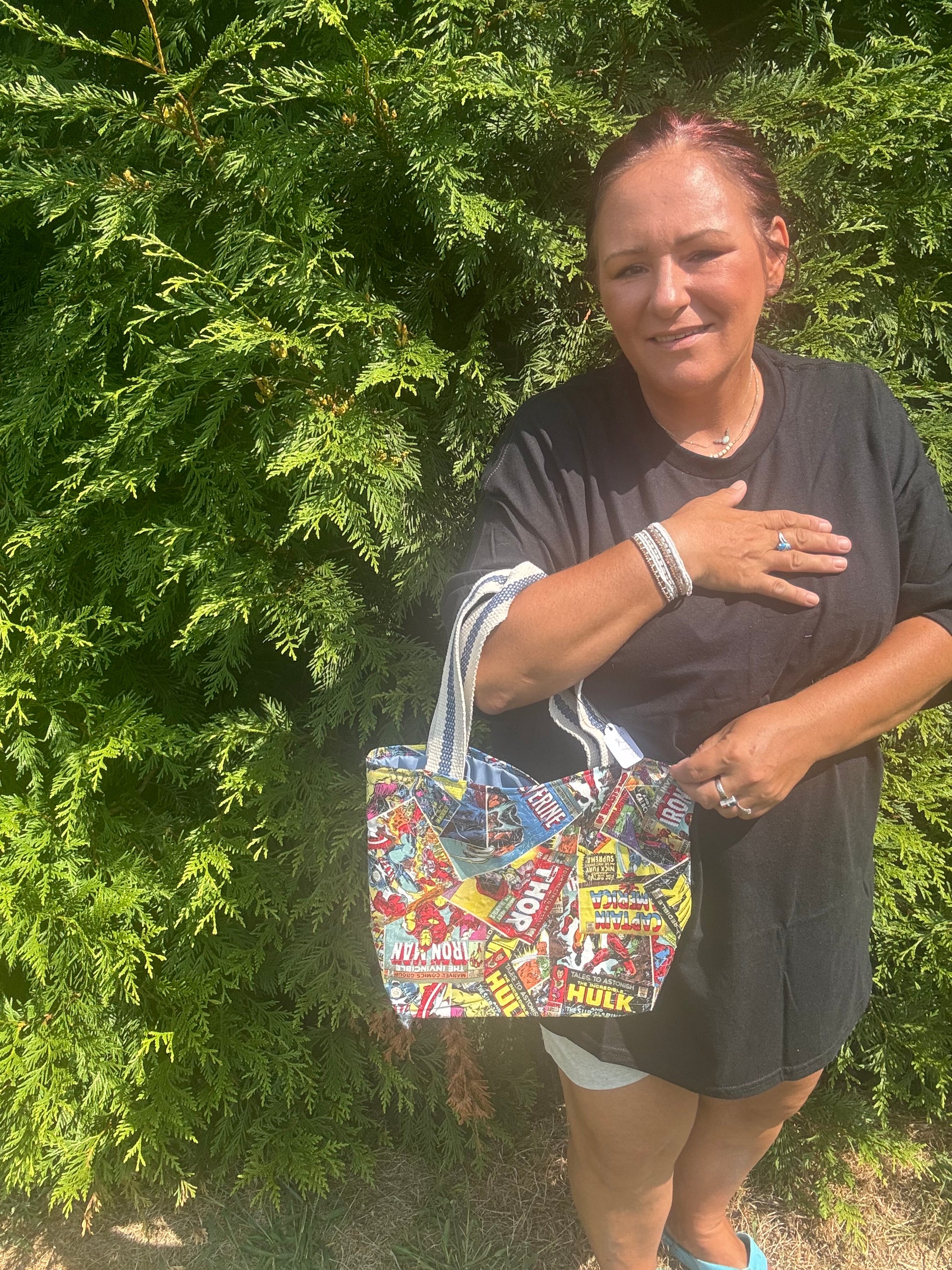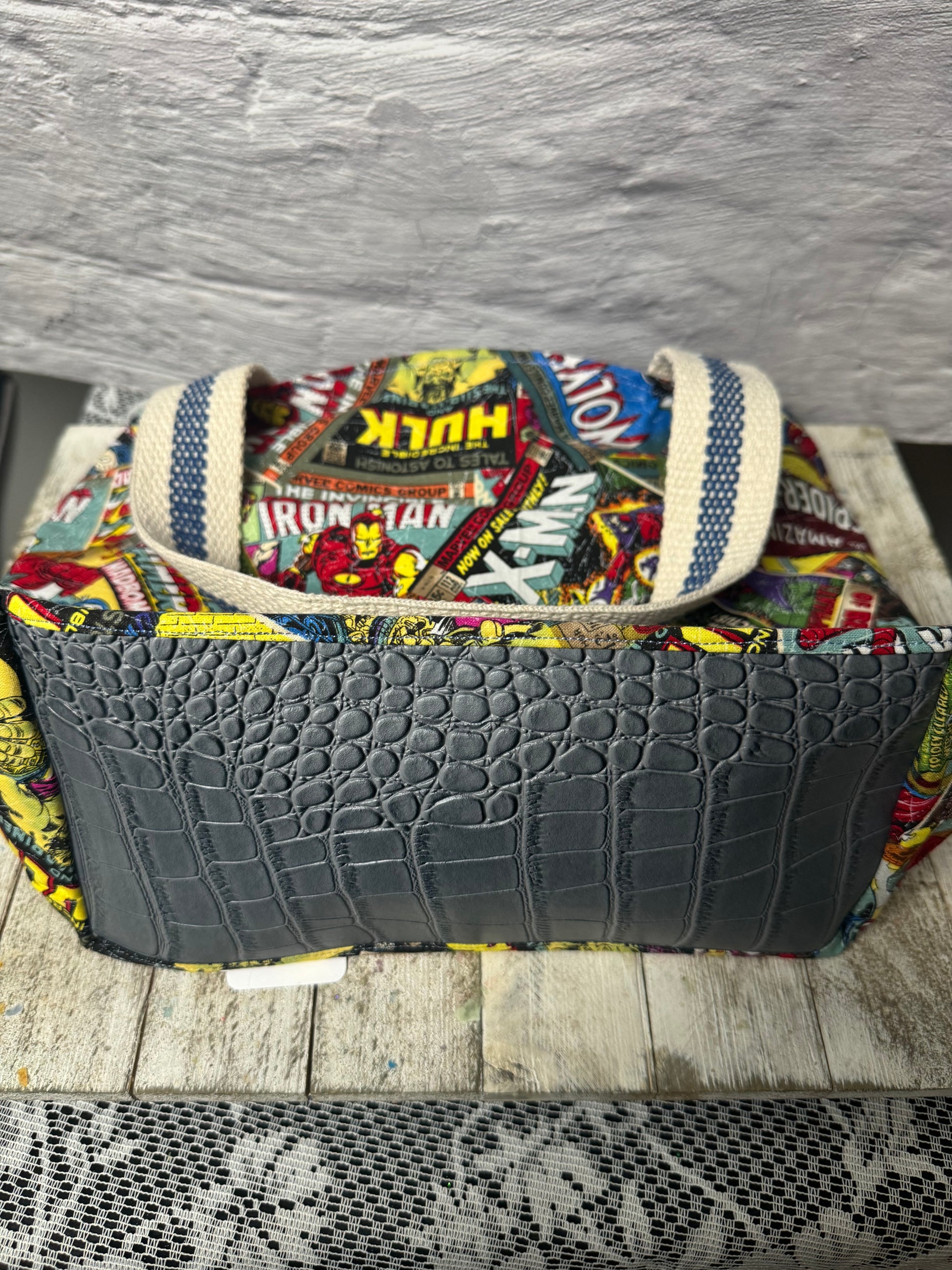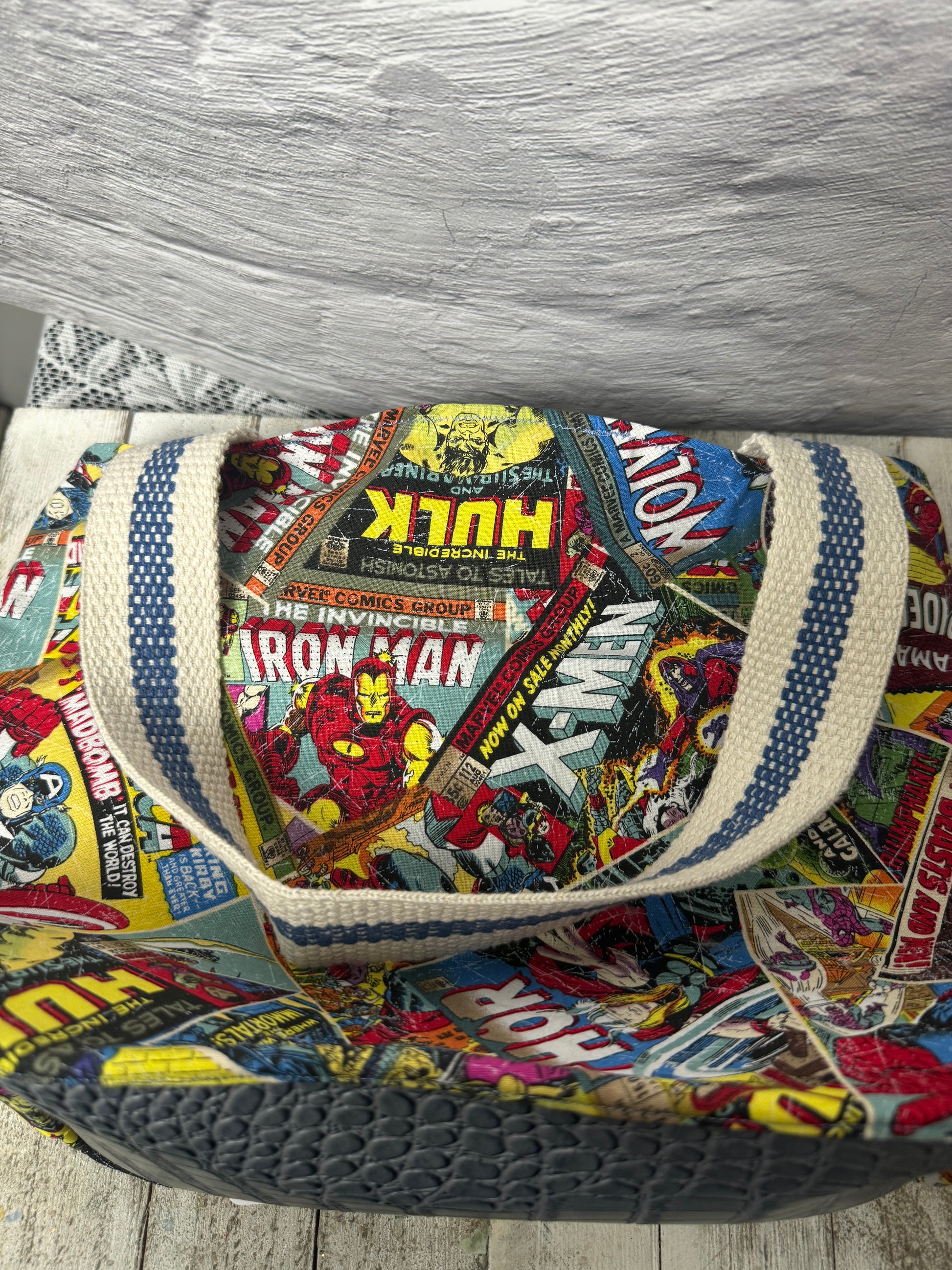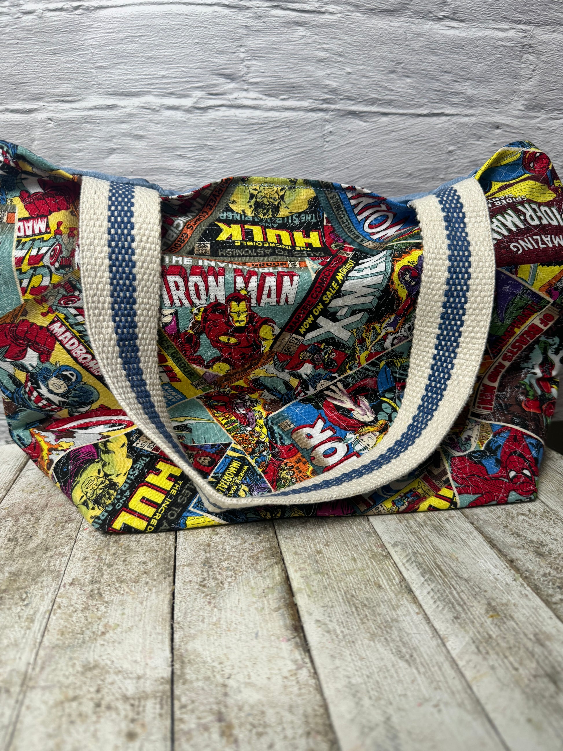 Unleash your inner hero with this Marvel tote bag, featuring thick, sturdy handles for all-day comfort. Measuring 14x10x5, it’s compact yet spacious enough to hold your daily essentials. The convenient slip pocket keeps smaller items within easy reach, making this bag as functional as it is stylish. Perfect for Marvel fans on the move!