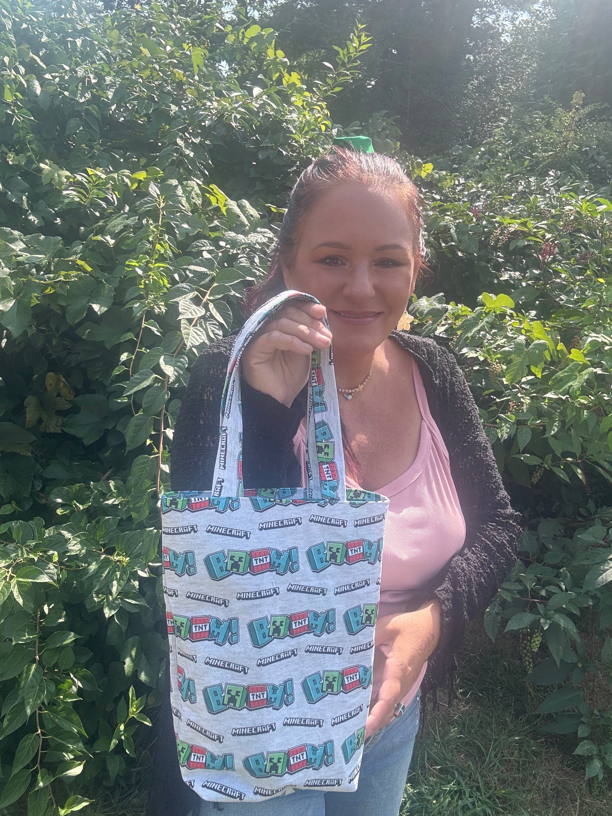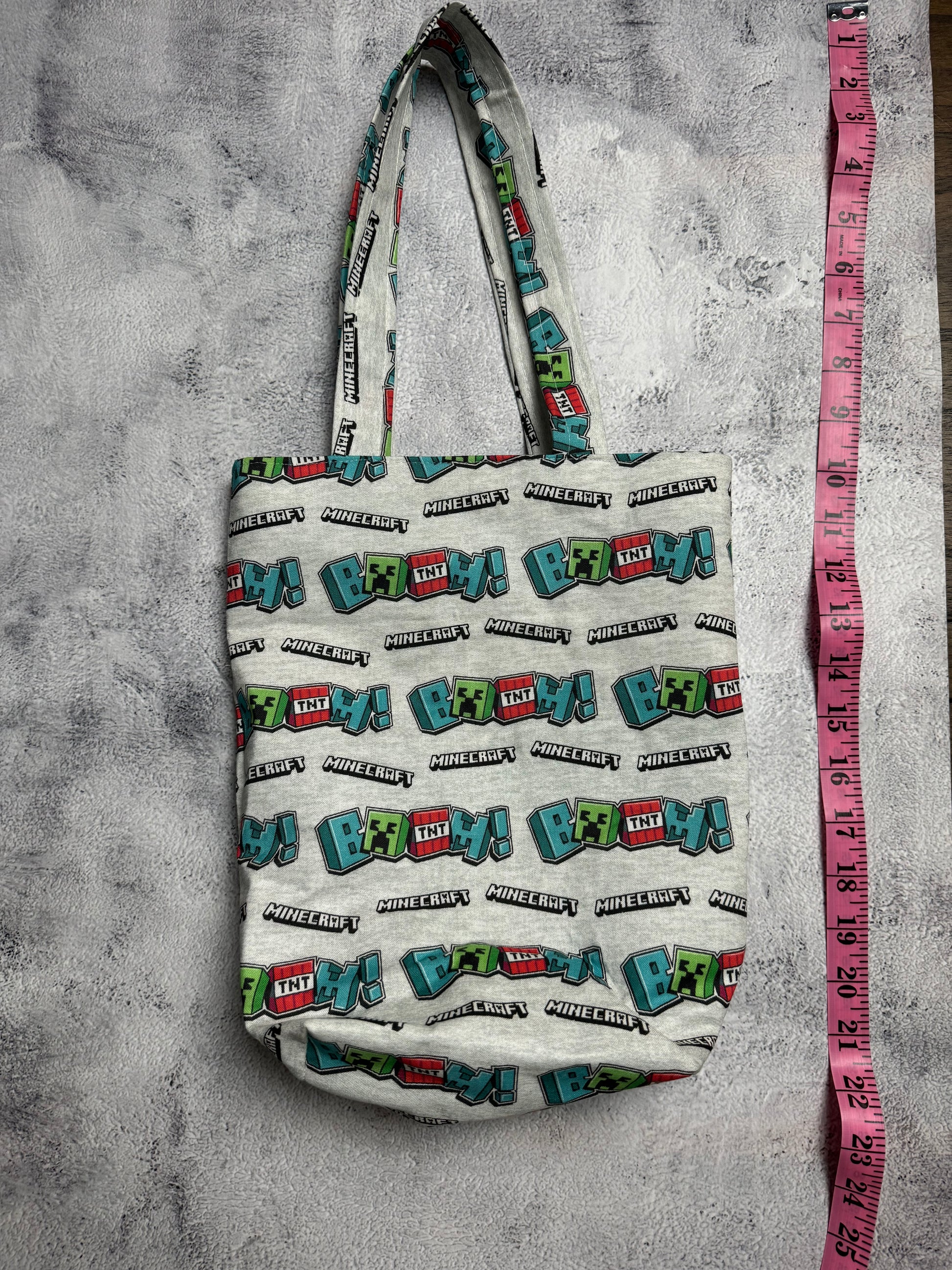 Carry your essentials in style with this fun Minecraft-themed small tote bag! Featuring iconic pixelated designs on the exterior and a vibrant blue lining inside, this tote is perfect for fans of the game. Whether you're heading out for a quick trip or need a compact carry-all, this bag blends playful design with everyday practicality.