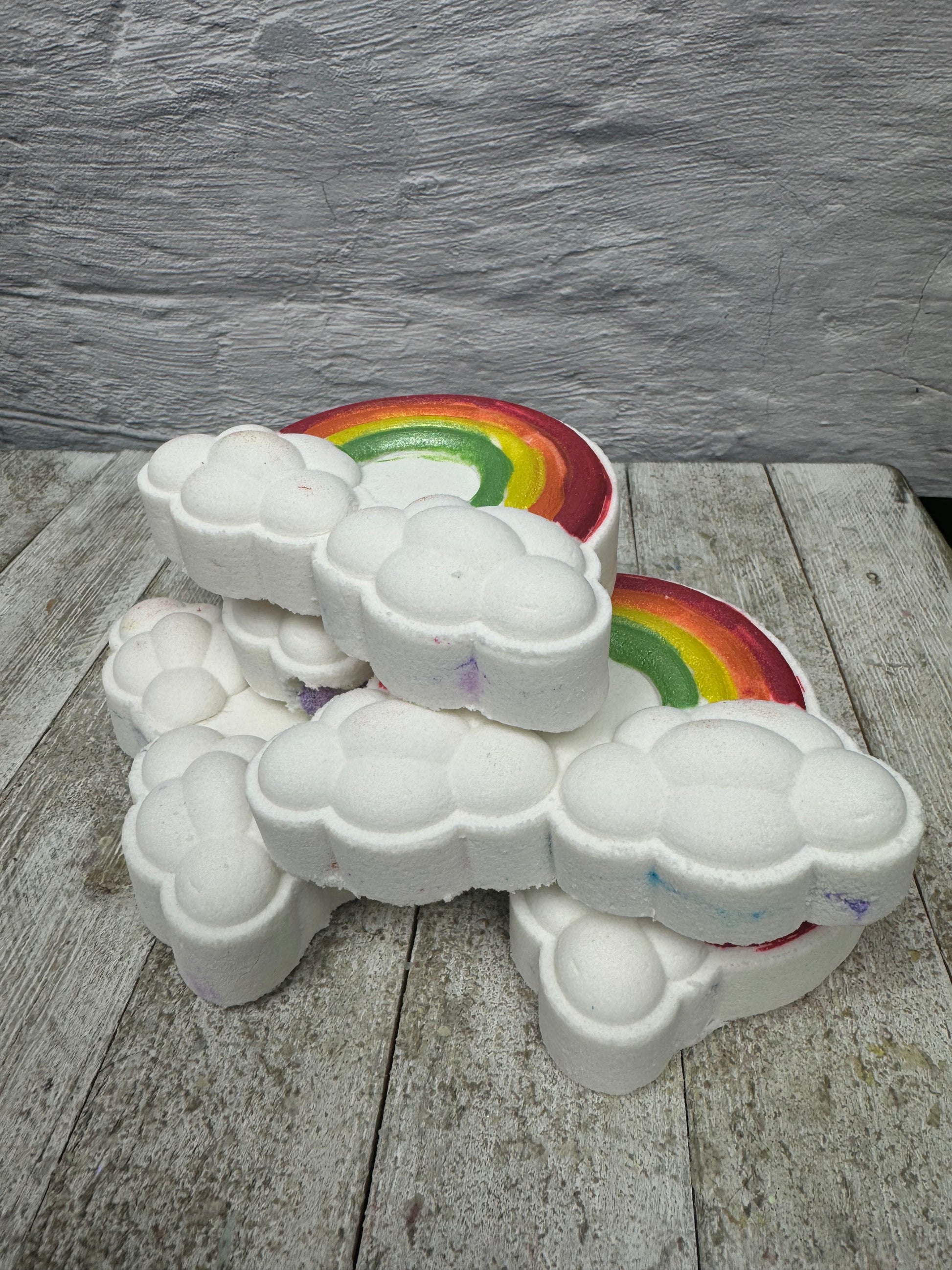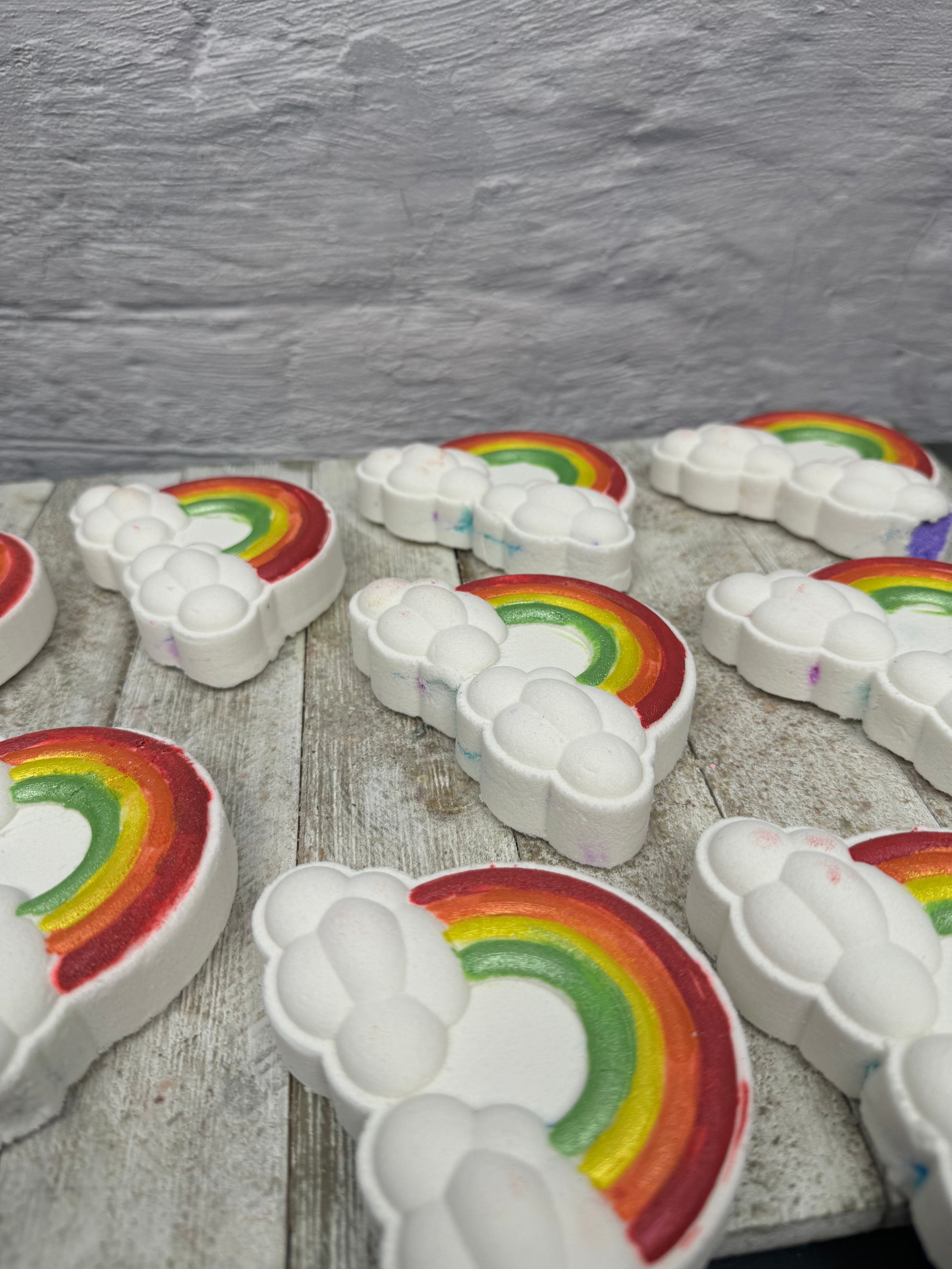 Rainbow Bath Bomb, Rainbow shaped painted bath bomb with embeds, rainbow embeds