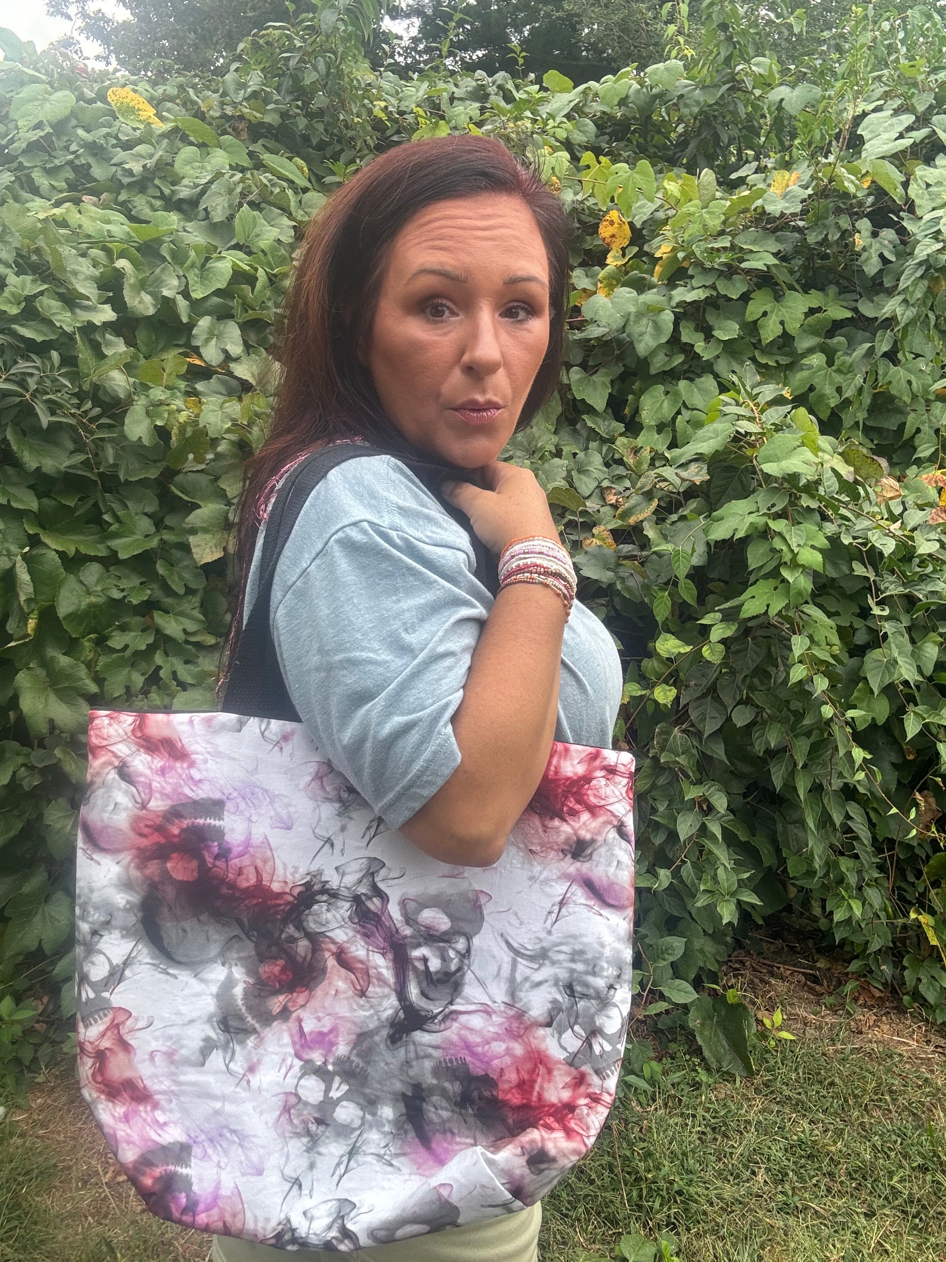 Carry your essentials in style with this large skeleton tote bag, perfect for adding a touch of edgy charm to your everyday look. Featuring a bold skeleton design, this spacious tote is crafted from durable materials, making it both functional and fashionable. Ideal for shopping, beach trips, or casual outings, this bag is a statement piece for those who dare to stand out.