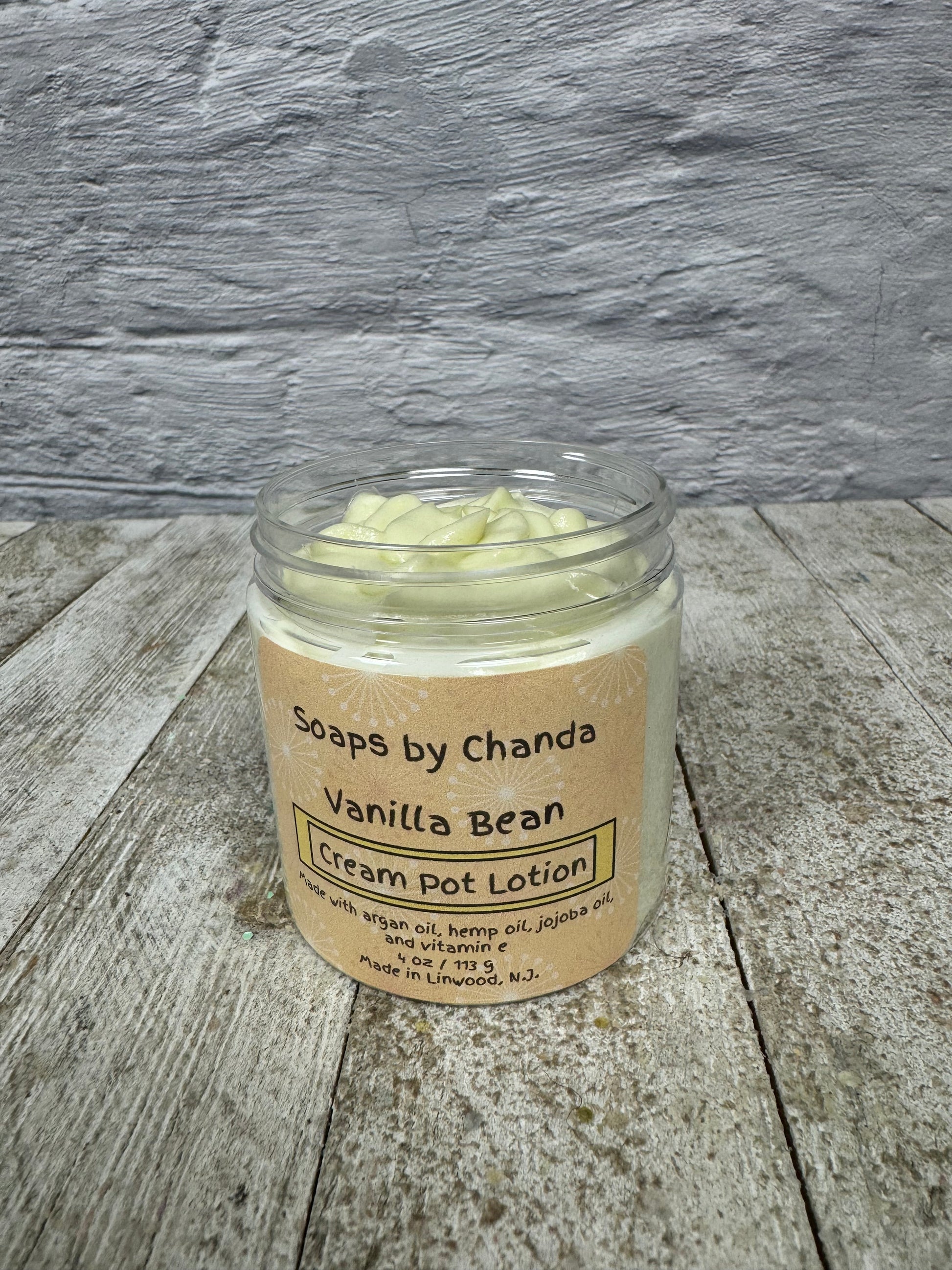 Indulge in the rich, velvety embrace of our Vanilla Bean Cream Pot Lotion. This luxurious blend is infused with pure vanilla bean extract, offering deep hydration and a comforting scent that lingers softly on your skin. Perfect for daily use, this non-greasy formula absorbs quickly, leaving your skin silky smooth and delicately scented. Pamper yourself with the timeless essence of vanilla in every drop.